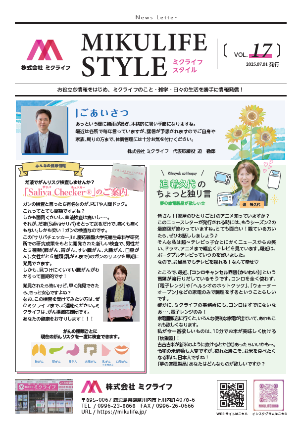 0996-23-8868【営業時間:9:00~18:00(日曜定休)】